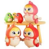 Thiết kế đáng yêu: Sản phẩm được thiết kế với hình dạng chú gà con dễ thương, với nhiều màu sắc tươi sáng (hồng, vàng, xanh lá, đỏ) và kiểu dáng ngộ nghĩnh. Mỗi chú gà mẹ đều có mũ và khăn quàng cổ, tạo nên vẻ ngoài đáng yêu và thu hút. Kích thước nhỏ gọn, phù hợp với tay cầm của trẻ nhỏ.