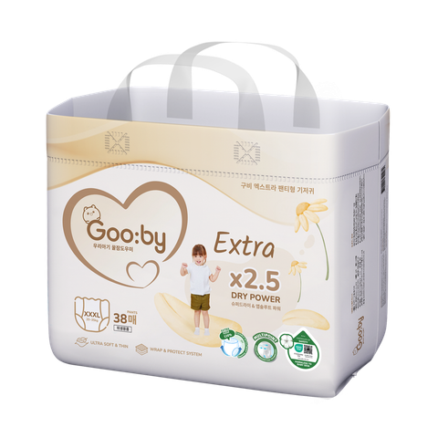 Tã quần Gooby Extra size XXXL (38 miếng) là dòng sản phẩm tã bỉm cao cấp từ thương hiệu GOOBY, được nghiên cứu và phát triển bởi VK Trading Hàn Quốc và sản xuất tại Trung Quốc theo công nghệ và giám sát chất lượng nghiêm ngặt từ chuyên gia Hàn Quốc. Sản phẩm được thiết kế đặc biệt cho các bé lớn có cân nặng từ 20 đến 35 kg, nổi bật với công nghệ Lock-Tech tiên tiến, bề mặt bông vi sợi hữu cơ siêu mềm mại, tinh chất hoa cúc Calendula giúp dưỡng da và ngừa hăm, cùng lõi nén Cotton-Soft siêu mỏng chỉ 1.8mm. Gooby Extra cam kết mang đến sự mềm mại, khô thoáng vượt trội và bảo vệ tối ưu cho làn da nhạy cảm của bé.